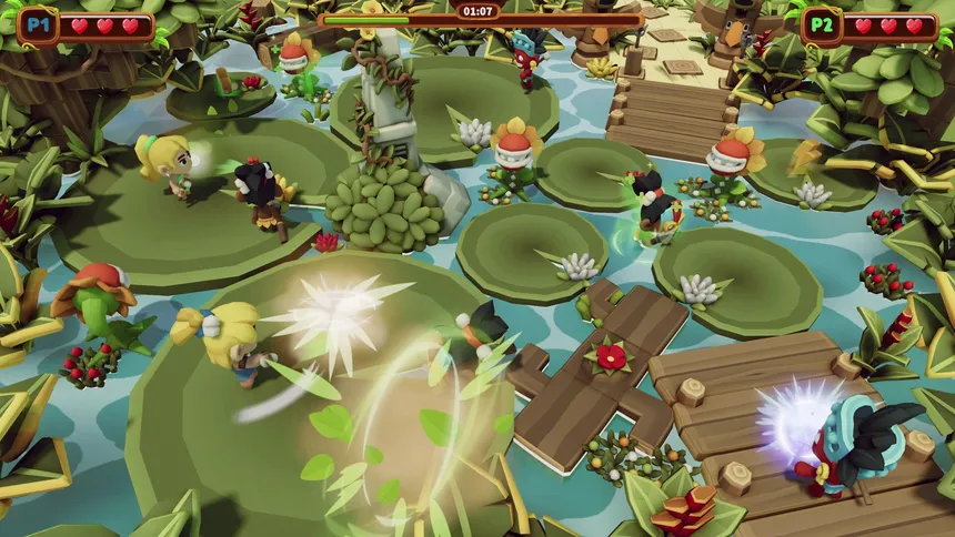 Приготовьтесь исследовать разнообразные локации – от густых джунглей и оживленных деревень до коварных шахт и таинственных храмов древних богов. Каждое место таит в себе новых врагов, уникальные испытания и боссов, требующих быстрой реакции и тактического мышления. Игра идеально подходит для тех, кто ищет казуальный, но захватывающий экшен.