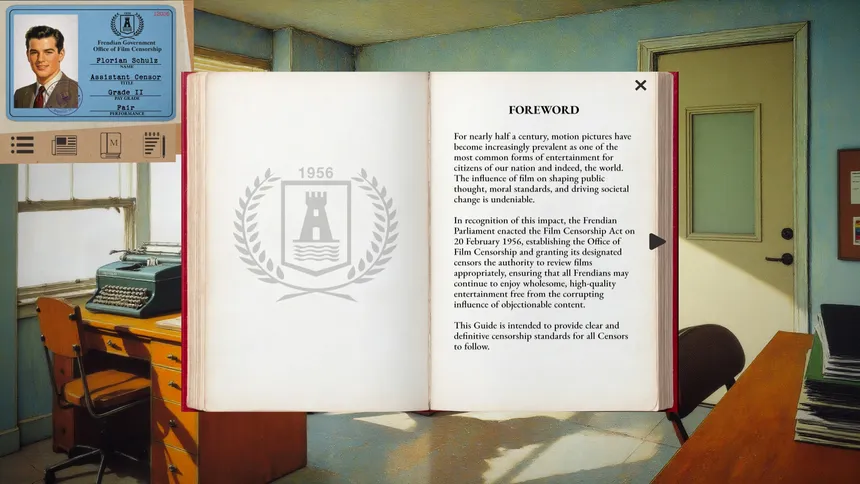 Assume the role of Assistant Film Censor Florian Schulz. Your job is to decide which films will be shown to public, balancing your duty to the nation with the need to provide for your family. Every decision carries weight. Shape the future of your country and protect those you love.