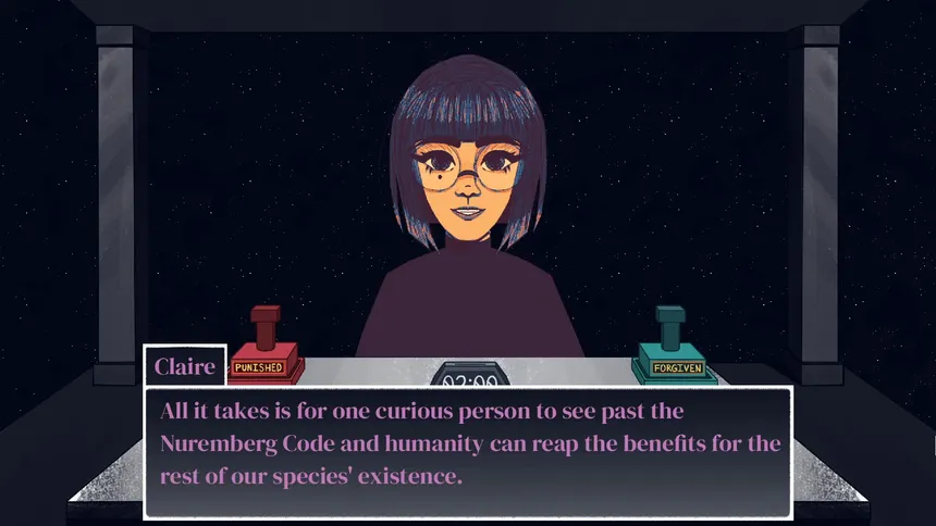 A point and click personality test game where you take the role of a Sorter, a soul tasked with determining the fate of the recently deceased. Learn their stories and sentence them to an afterlife of either punishment or forgiveness as you confront your own morality.