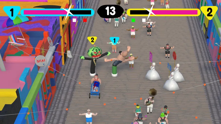 Olinda Fighters is a brawl style fight game, inspired by Brazilian northeastern carnival characters. It features three different play modes for single player, two players versus mode, and online multiplayer. Use power ups and energy drinks to move faster and hit harder your opponents.
