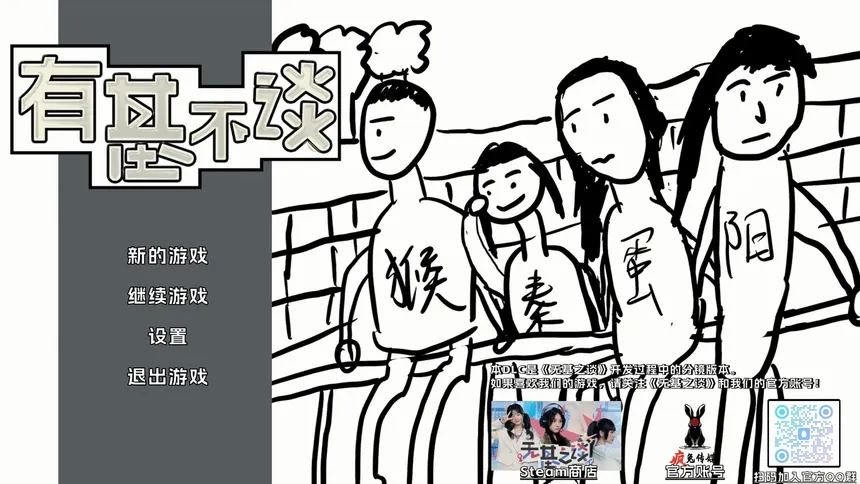 Этот проект от 疯兔游戏(FUNTOO Studio) предлагает уникальный визуальный стиль – все спрайты, CG и даже милые чиби нарисованы одним, видимо, очень увлеченным разработчиком. Игра выполнена в жанре визуальной новеллы с акцентом на рисованную графику, мемы и своеобразный абстрактный юмор.