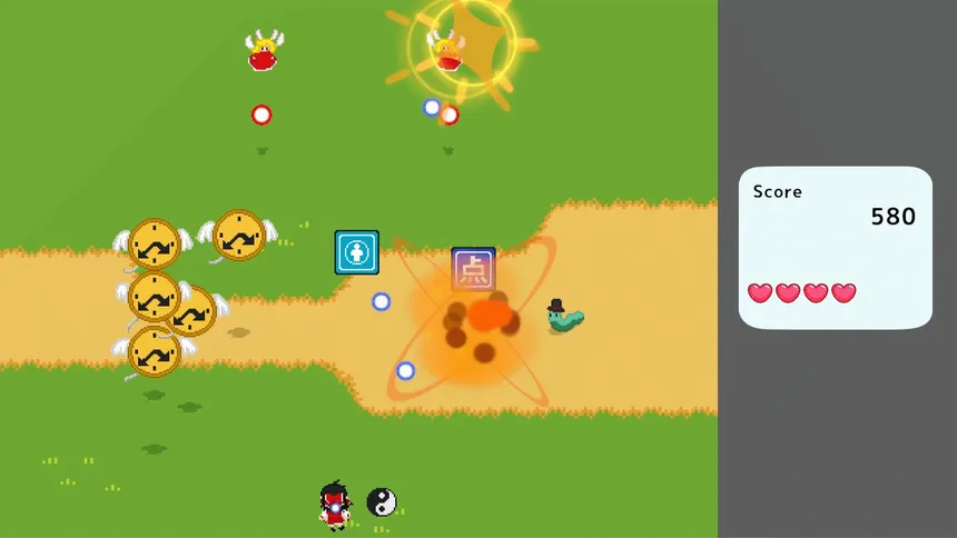 Touhou Fantalica is a 2D shooting game based on the Touhou Project. Reimu is pulled into a magical book and must find her way out of a mysterious world.