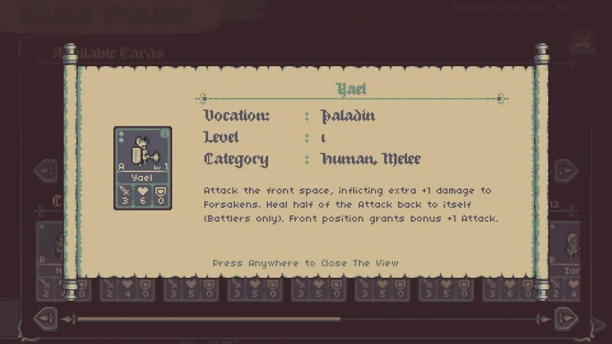 A pixel-art card-battler RPG where you gather allies, upgraded their vocations, and fight beside Princess and her guardian Arlo against the Forsakens who seek to claim the kingdom.