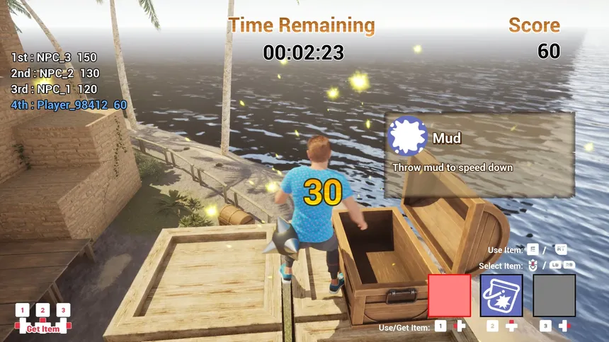 "Chest! Gotcha!" is an online action game with up to 4 players. On an island, where many treasure chests can be found, find and open treasure chests to get more scores than your rivals!