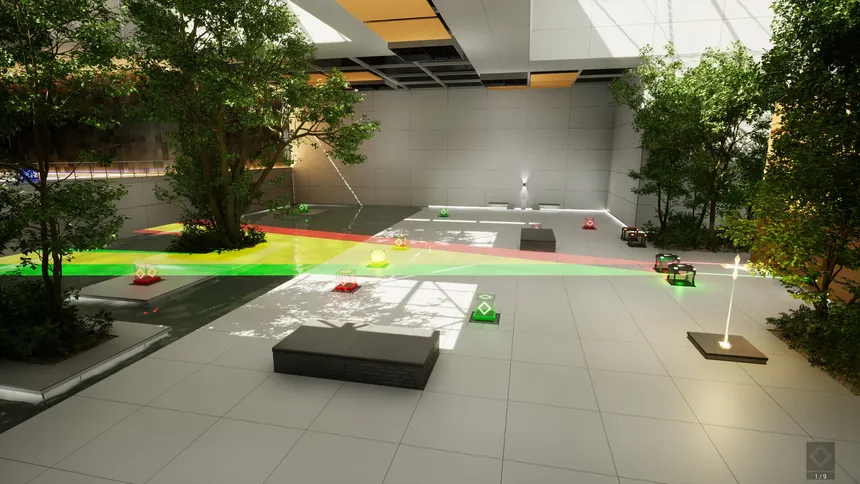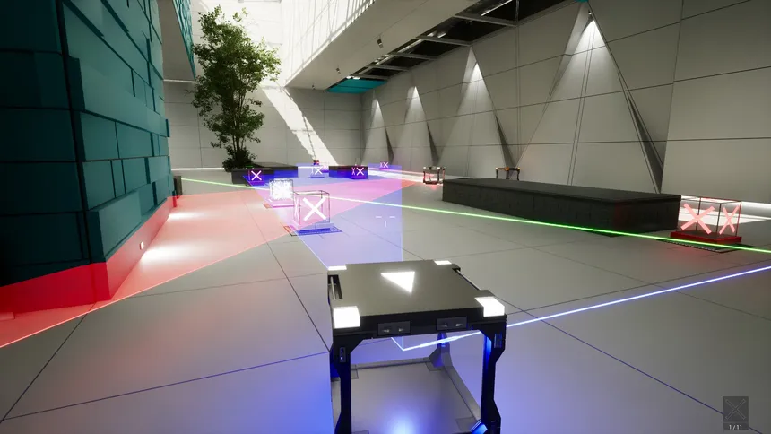 ReThink | Evolved Free is a free first person puzzle game in a peaceful futuristic setting, that features a variety of Puzzles that utilize Lasers and the behavior of light and it's colors to create challenging problems to solve. The game features a somewhat toned down difficulty progression.