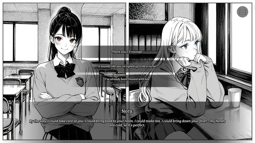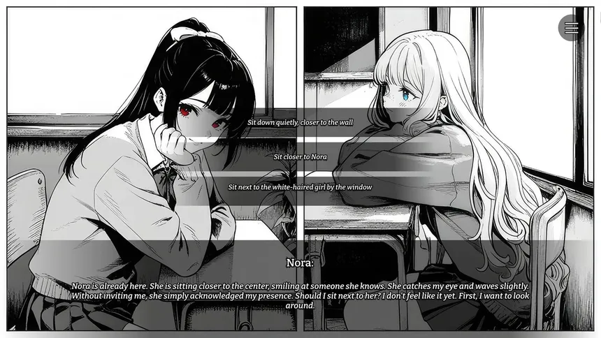 Ты — стипендиат в закрытой Академии Вейр. Две героини. Нора или Лика? Доверие или дистанция? Система или что-то глубже? Интроспективная новелла о напряжении, сближении и молчаливых решениях.