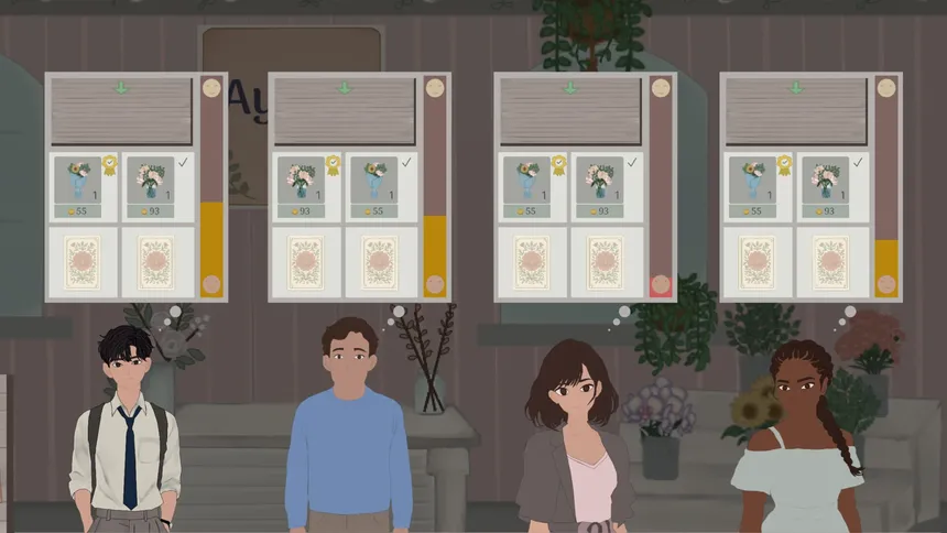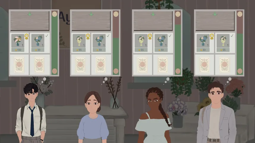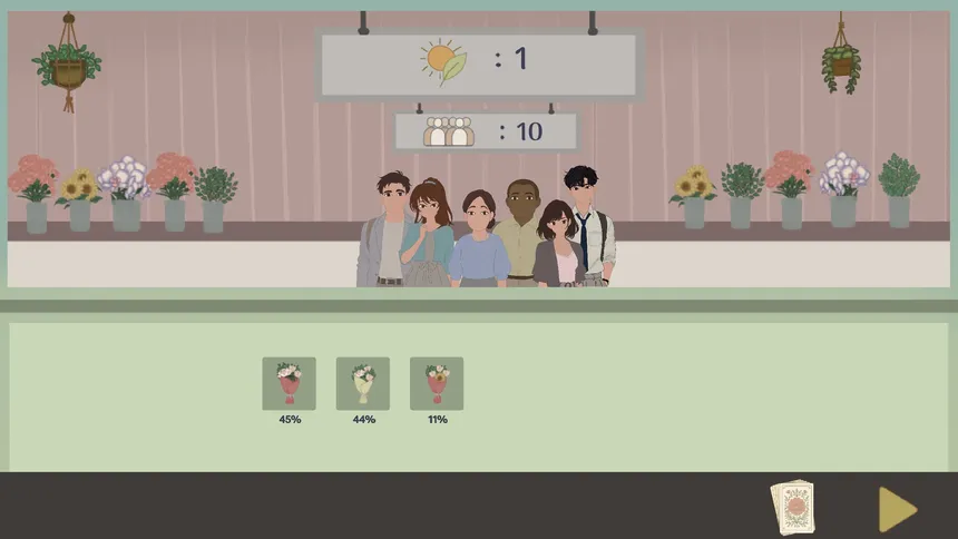 Build your map with strategic tiles, stock up flowers based on daily forecasts, craft stunning bouquets, and serve customers in a turn-based rhythm. Play cards to boost profits, manage guests, and grow your reputation as your shop flourishes.