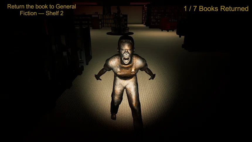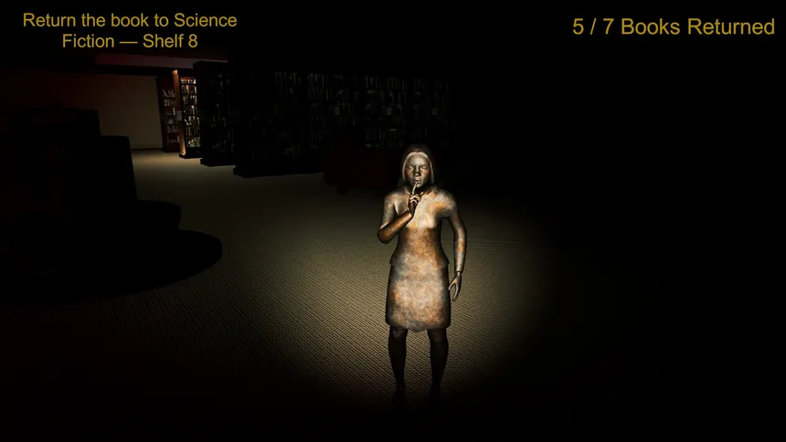 A first-person psychological horror game where you must return seven books to their shelves in a deserted library while being hunted by statue-like entities that only move when unobserved. Survive using observation and strategy in this tense 20–30 minute experience.