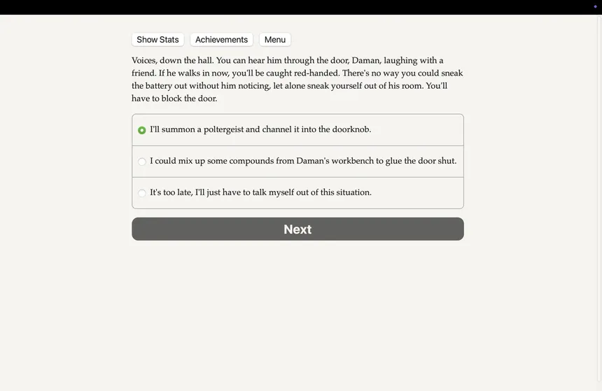Awaken your magic and break an ancient curse at a secret school of sorcery! What mysteries will you uncover at this crossroads between realms? A text-based fantasy novel, 280,000 words and hundreds of choices, without graphics or sound effects.