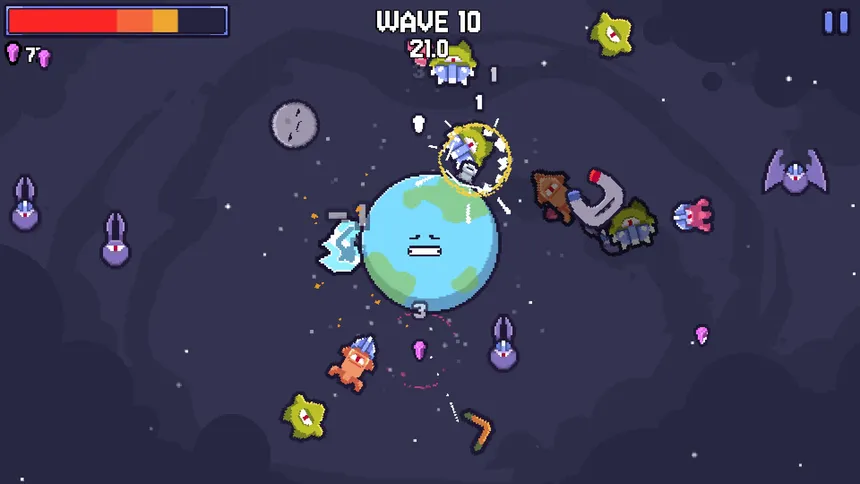 ROTATO — это динамичный roguelite-survival экшен, который легко освоить, но сложно пройти до конца! Приготовьтесь к захватывающим забегам, где вам предстоит вращать пушки вокруг планеты, отбиваясь от нескончаемых волн милых, но смертоносных пришельцев.