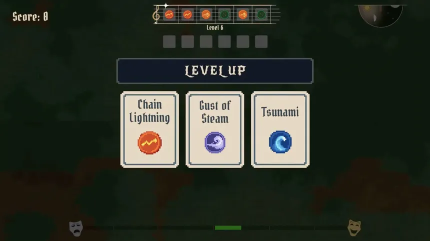 Ключевая механика игры – создание шестислотной последовательности заклинаний, автоматически срабатывающих в такт. Комбинируйте элементы, находите взрывные синергии и превращайте мелодии в хаос! От каждого вашего действия зависит судьба выступления: успешные комбо и оригинальные заклинания вызывают бурную реакцию публики, а промахи – недовольство и град помидоров.