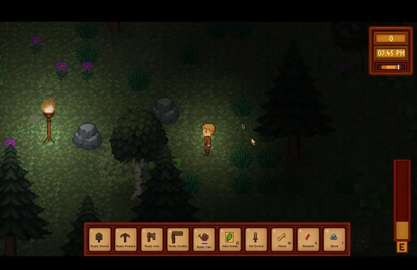 Игра начинается с дарованного Королем небольшого участка земли — вашего нового фермерского хозяйства. Вам предстоит с нуля обустроить свой быт, собирать ресурсы, создавать инструменты и оборудование. Важно не забывать об отдыхе и поддержании энергии, ведь баланс между трудом и заботой о себе — залог успешного развития.