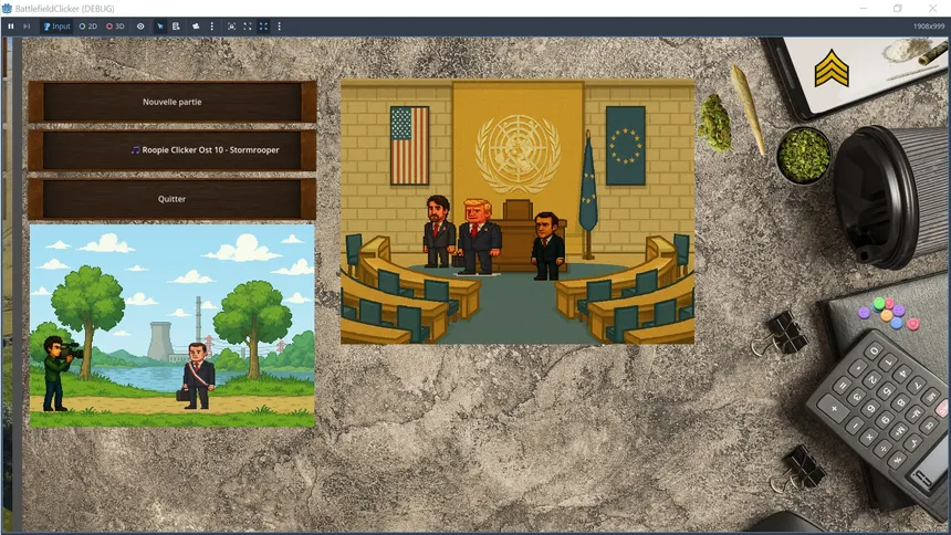 Roopie Clicker – это необычный симулятор стратегии от CILINDRE, погружающий вас в роль командира в разрушенной стране. Ваша задача – восстановить порядок, используя лишь смелость, стратегическое мышление и… щелчки мыши. Каждый клик – это действие, каждый шаг приближает к свободе.