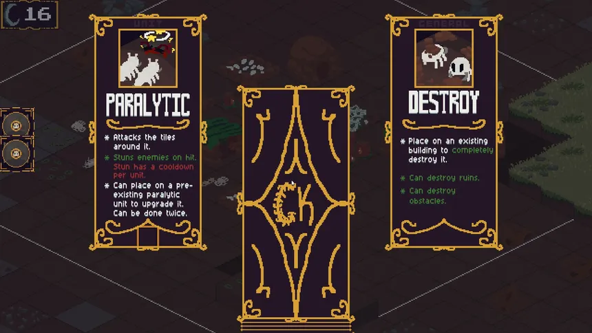 Днем вы планируете развитие колонии, вытягивая карты зданий и юнитов. Каждый выбор имеет значение – здания могут усиливать или ослаблять ваших подопечных, а продуманная планировка критически важна для обороны. Но не забывайте о ресурсах – ваша колония не бесконечна, и перенаселение может сыграть злую шутку.