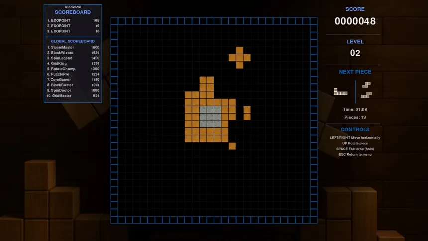 Простая механика — собирайте блоки 3x3 для набора очков. Звучит легко, но на деле SpinGrid потребует от вас концентрации и умения быстро просчитывать ходы. Игра предлагает три режима: расслабленный для новичков, стандартный для тех, кто любит классику, и хардкорный для настоящих мастеров, где вас ждут стремительное падение блоков и повышенная сложность.