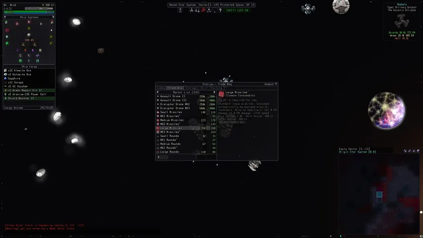 Сектора – это не просто точки на карте, а целые игровые зоны, содержащие боевые арены и аномальные области с ценными наградами. Игроки смогут строить собственные станции, укреплять их дронами для защиты от врагов и взаимодействовать с другими NPC базами для торговли и выполнения заданий. Экономика игры динамична, цены на ресурсы меняются в зависимости от региона, что открывает возможности для прибыльной торговли.