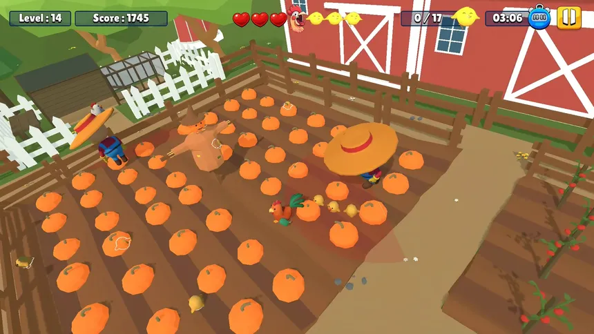 В Chicks In Trouble вы сможете взять управление в свои руки, используя мышь, тачпад или геймпад – выбор за вами! Пробирайтесь через поля, избегайте хитрых фермеров и их питомцев, собирайте полезные бонусы и разгадывайте хитроумные головоломки, чтобы вернуть всех цыплят домой. Каждый уровень – это новое испытание и возможность продемонстрировать свою ловкость и смекалку.