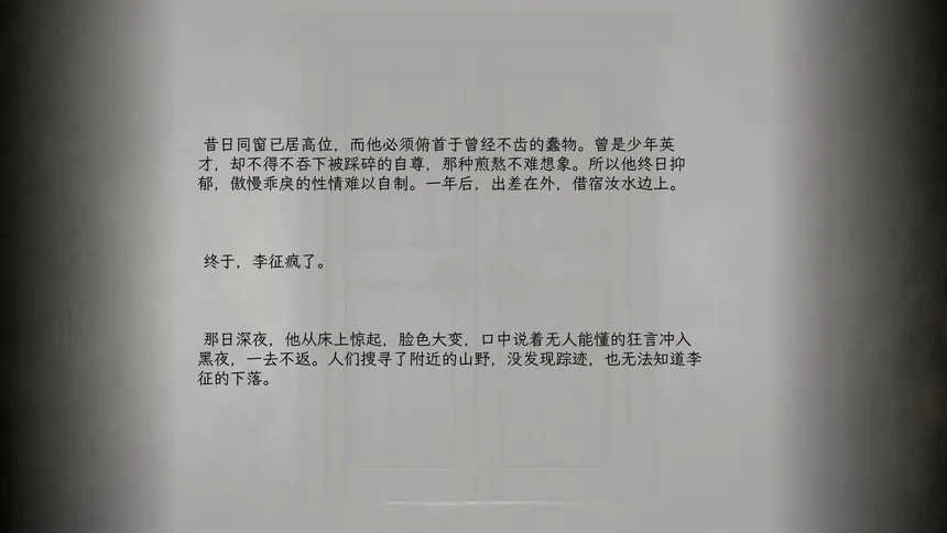 Геймплей представляет собой прохождение по единому сюжетному пути в режиме NVL (Novel Visual Mode), что позволяет полностью сосредоточиться на тексте и переживаниях главного героя. Вас не будут отвлекать сложные механики или необходимость принятия решений. Игра делает ставку на минимализм в визуальном оформлении и музыке, чтобы максимально погрузить вас в мир отчаяния и внутренней борьбы Ли Чжэна. Приготовьтесь к сильным эмоциям, ведь среднее время прохождения всего 15 минут – но эти минуты останутся с вами надолго.