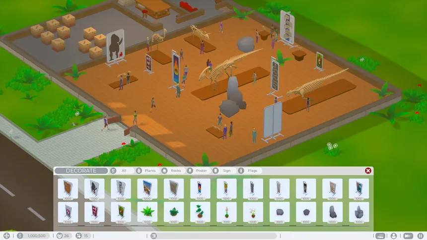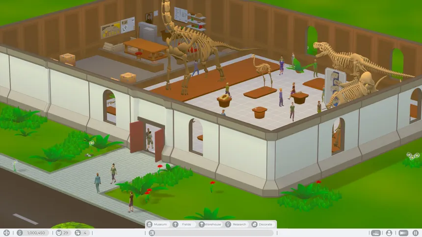 Вам предстоит не просто выставлять находки, но и управлять музеем, развивать его инфраструктуру и постепенно расширять коллекции. Финансируйте раскопки, чтобы находить все новые и новые окаменелости и предметы декора, привлекающие посетителей.