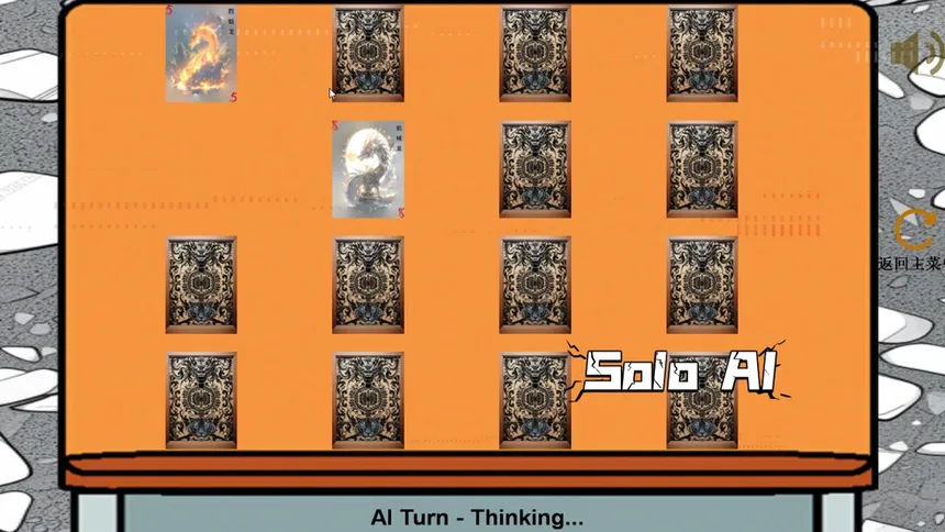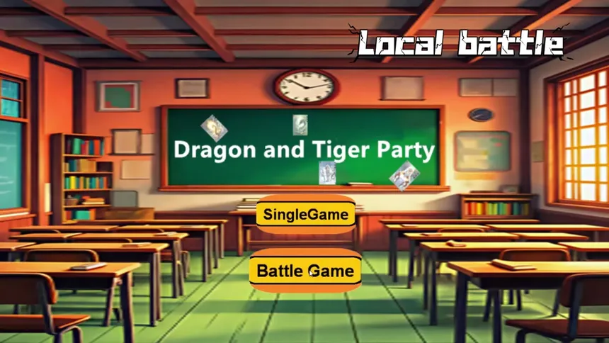 "Dragon and Tiger Party" is a turn-based strategy card game with "Dragon" & "Tiger" camps, supporting single-player (vs AI) & two-player (vs player) modes—flip cards to fix your camp, move strategically, battle with card number restraint, aiming to eliminate opponent’s cards or draw.