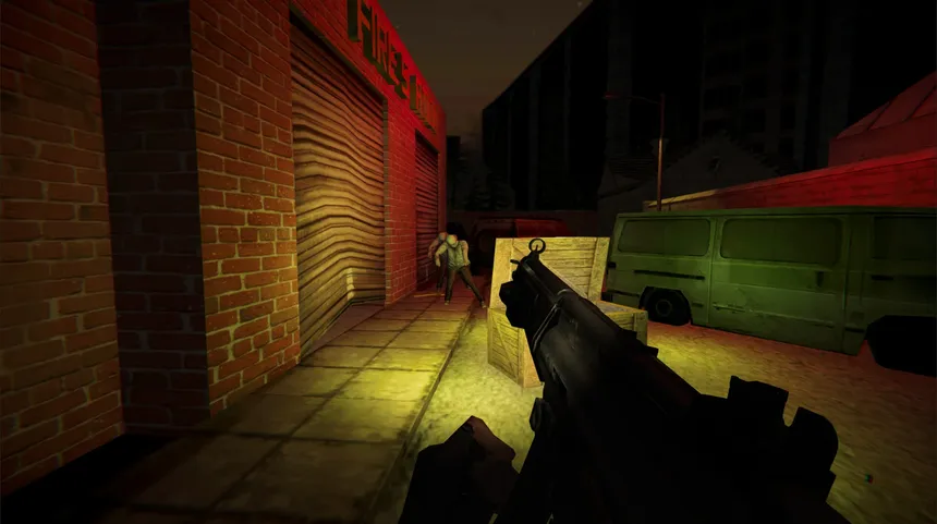 After Dark is a first-person endless wave zombie shooter set across multiple locations. Survive as long as you can against relentless hordes of the dead in a fight that only ends when you do.