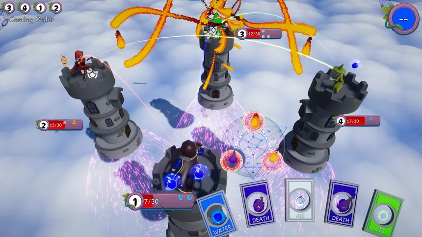 В Wild Wizard War вам предстоит составлять уникальные заклинания из карт стихий, сражаясь с другими волшебниками. Каждый раунд – это новый вызов, требующий быстрого принятия решений и умения предвидеть действия оппонентов. Комбинируйте стихии, чтобы обрушить на врагов разрушительные атаки или воспользуйтесь дикой магией для непредсказуемых эффектов. Главное – не потерять контроль над своим заклинанием!