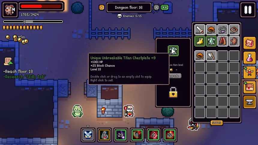 A pixel art idle dungeon crawler where you fight automatically, gather loot, upgrade gear, and unlock new attributes and skills to progress deeper into the dungeon.