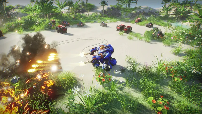 Drive tanks & robots in a roguelike bullet-heaven, playable top-down or third-person. Survive 15 waves of chaos—drift, shoot, smash, and unleash physics-powered mayhem with customizable builds.