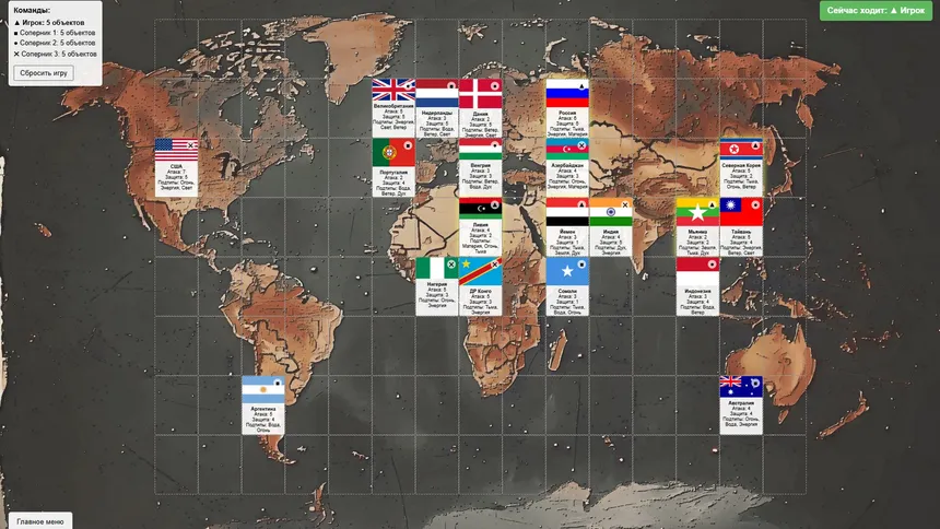 GLOBAL CONTROL COUNTRIES — это уникальный карточный симулятор, погружающий в мир геополитики и стратегии. Если вам интересно не просто воевать, а понимать механизмы влияния, дипломатии и информационных войн, эта игра станет отличным способом проверить свои силы и получить ценные знания.