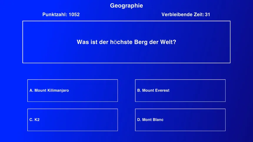 A relaxing quiz game with Free Play and 100-second modes. Test your knowledge of geography, history, sports, science and more – improve your high score and have fun doing it!