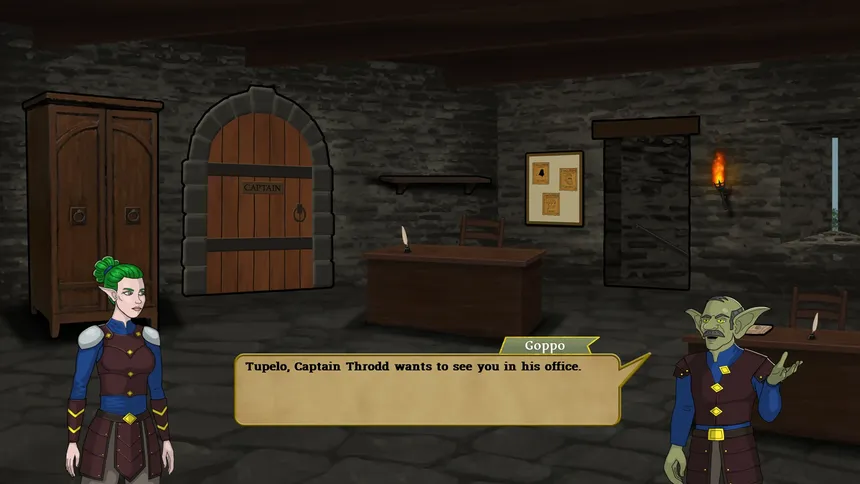 A buddy-cop rom-com visual novel set in a medieval fantasy world.