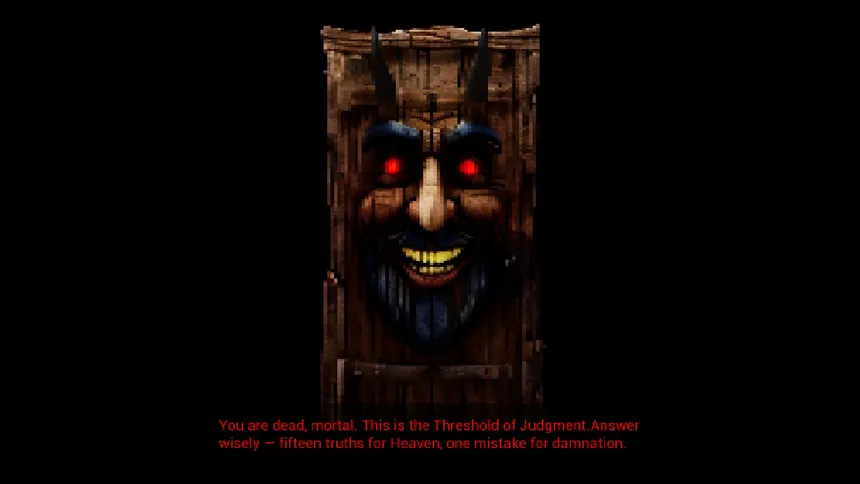 Threshold of Judgment — это мрачное и атмосферное приключение, где ты оказываешься на грани между жизнью и смертью, перед вратами, решающими твою вечную судьбу. Ты уже мертв, но твоя душа ещё не обрела покоя. Чтобы избежать вечных мук, тебе предстоит пройти финальное испытание — ответить на 15 сложных вопросов, заданных Хранителем Врат и его порождениями, существами, судящими правду, логику и мудрость.