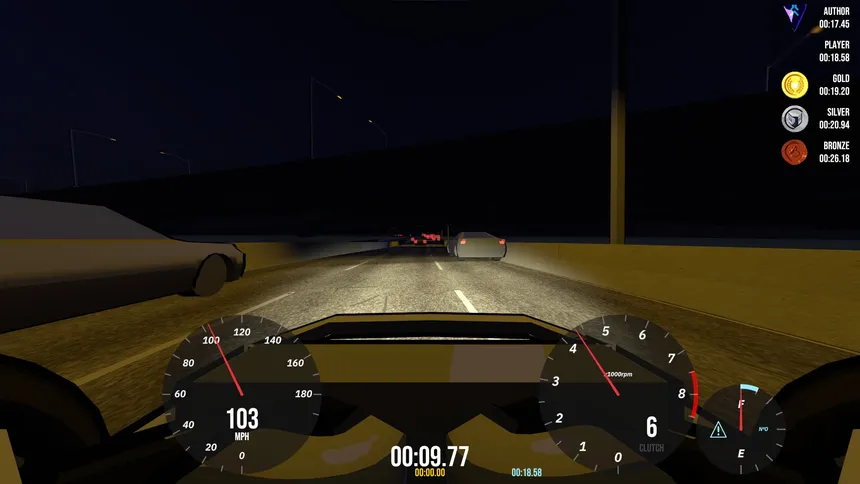 Tear through 15 time-attack arcade tracks in a drift-happy stick-shift muscle car. Find the perfect drift line, rev-match your shifts, and manage your nitro economy to get the author medal on every single one.