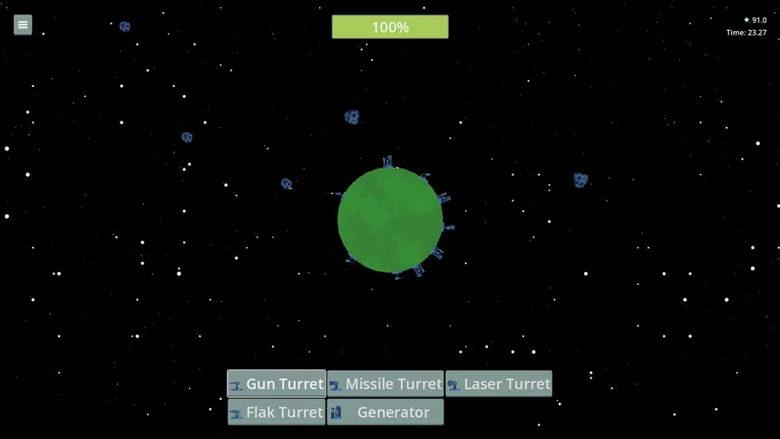 Defend your planet from relentless stream of incoming asteroids in this fast-paced 2D tower defence game. Strategically place defensive buildings and upgrade your arsenal to protect your world from destruction!