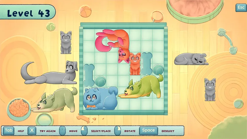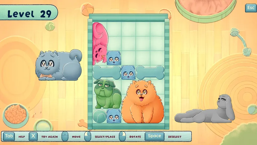 Fit My Dog – это не просто игра, это 96 уровней стратегического планирования и умения находить оптимальное решение. Придется хорошенько подумать, как расположить всех пёсиков, чтобы никому не было тесно и все чувствовали себя комфортно. Разработанная RedDeer.Games для PC, эта казуальная игра станет отличным способом расслабиться и потренировать свой мозг.