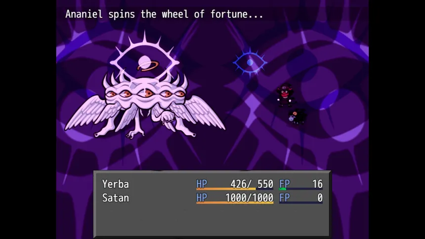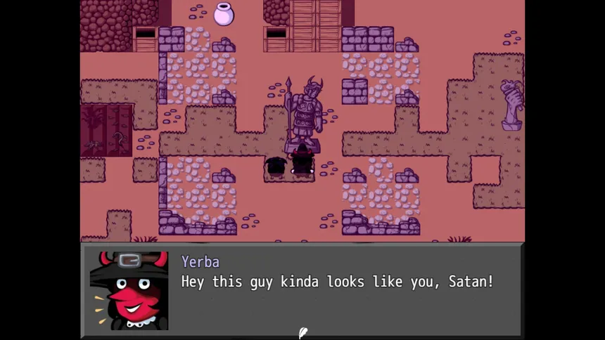 A turn-based RPG about a pair of demons fighting to overthrow an unjust regime. Battle through the crumbling remains of Hell, God's forgotten penal colony, on a quest to find the Apple of Enlightenment and bring justice to the wrongly damned.