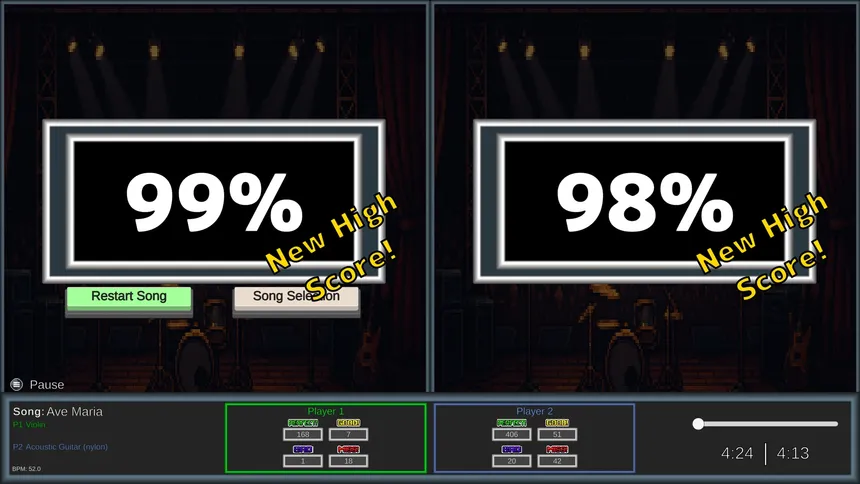 Играйте в одиночку или соберите друзей, наслаждаясь локальным мультиплеером до 4 игроков. В ближайшем будущем разработчики планируют добавить онлайн-режим, чтобы вы могли делиться своими музыкальными выступлениями с игроками со всего мира.