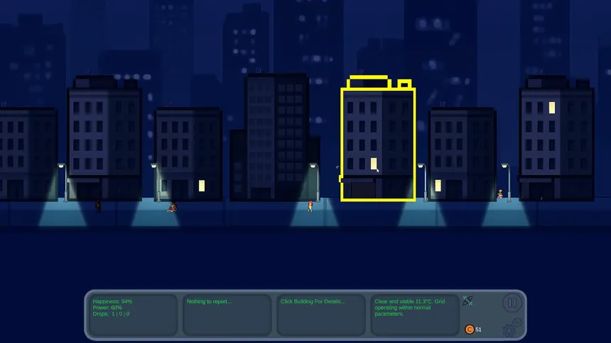 Power Grid Panic – это суровая, но забавная песочница-симулятор, где вам предстоит стать последней надеждой города на свет. После внезапного ухода предыдущего менеджера, вся ответственность за энергетическую сеть ложится на ваши плечи. Будьте готовы к работе с полуразрушенной инфраструктурой, мизерным бюджетом и постоянным недовольством горожан.