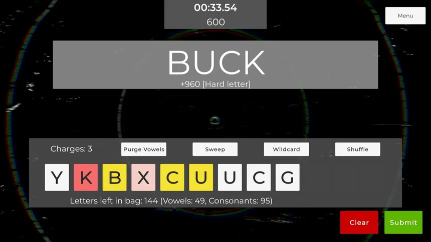 Character Limit предлагает несколько режимов игры, включая бесконечный режим, режим "Очисти мешок" и пользовательские настройки. Ежедневные испытания позволят вам проверить свои силы в сравнении с другими игроками и побороться за место в таблице лидеров. А если ситуация станет критической, воспользуйтесь полезными бонусами, такими как удаление гласных, сдвиг ряда букв или добавление джокера.