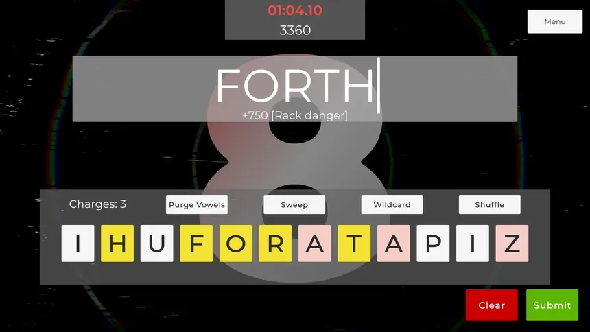 Основная задача – удержаться как можно дольше, выстраивая цепочки слов, чтобы освобождать место на игровом поле. Каждая секунда на счету, а неумолимый поток букв подгоняет и создает ощущение постоянного давления. Вам придётся взвешивать риски: составить длинное слово ради большого количества очков или сыграть безопасно, чтобы не переполнить лимит. Правильного ответа нет – только скорость, интуиция и осознание того, что вы, возможно, не так хорошо знаете английский язык, как вам казалось.