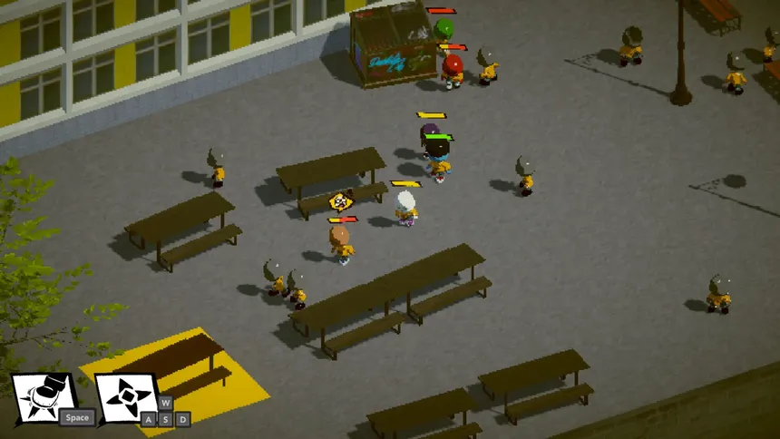 Игра выполнена в ретро 3D пиксель-арте, который навевает воспоминания о беззаботных временах. Потертые школьные формы, рваные кеды и мяч, ревущий с каждым ударом – чистейшая энергия урбанистической культуры и вкуса детства. Доступны режимы для одного игрока, многопользовательская игра и совместные баталии.
