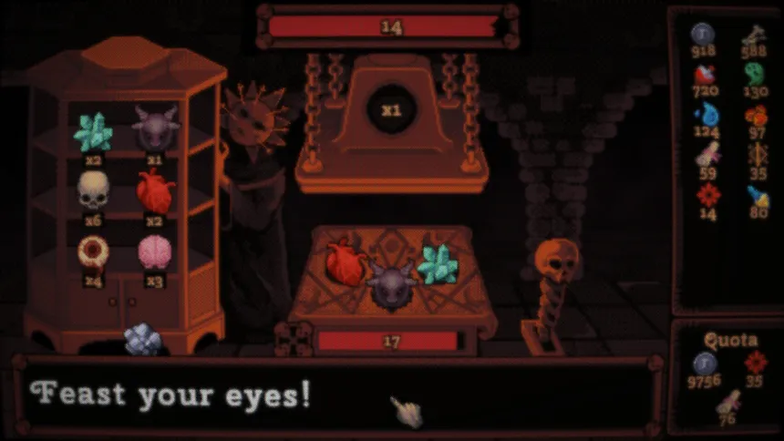 Приготовьтесь к рутине, но не простой: собирайте ресурсы, размахивайте киркой по сверкающих рудах, живой плоти и потусторонним артефактам. Объединяйте добытое, чтобы создавать еще более мощные ингредиенты, открывая новые грани безумия.