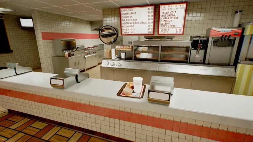 Разработанная Pixel Maniacs для PC, It's Always Happy at Chubby's смешивает в себе элементы экшена, хоррора и исследования. Вам предстоит не просто наливать газировку и жарить бургеры, но и следить за камерами, соблюдать странные правила, и, возможно, разгадать тайны Chubby's – "самого счастливого места в Америке™". И помните, любые правила могут измениться с началом новой смены!