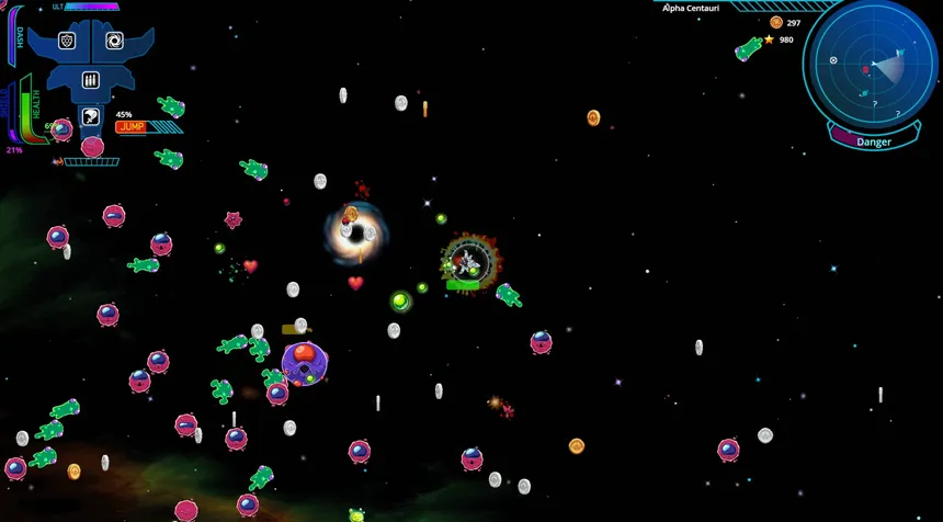 Menacetide – это динамичный научно-фантастический шутер с видом сверху, где каждая секунда на счету. Земля пала под натиском инопланетного вторжения, и вам предстоит отчаянная миссия по отражению угрозы. Соберите топливо, чтобы подготовиться к прыжку в следующий сектор, постепенно приближаясь к дому врага.
