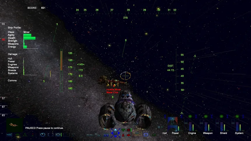 A futuristic space combat simulation set in deep space featuring 1st person combat, exploration of new warp paths and sectors, prospecting resource, shipping freight, base building or munitions deployment. Up to 9 player ships can be flown or assigned to a co-pilot and grouped into squads.