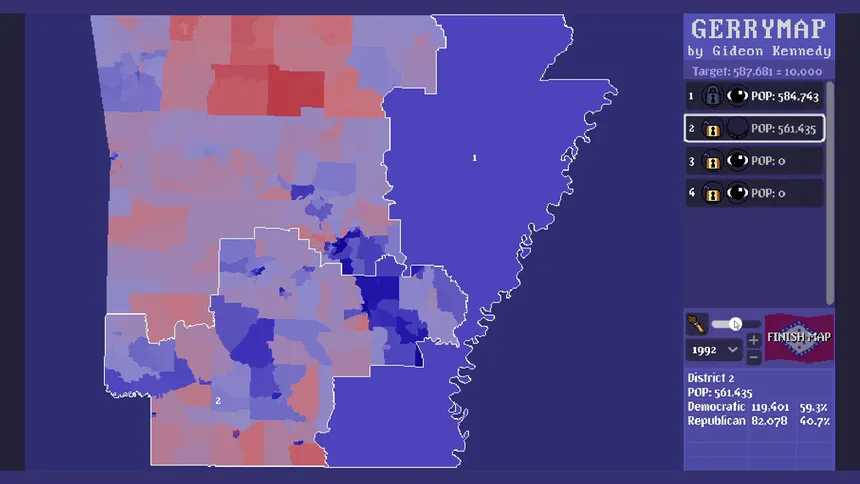 Gerrymap — игра от компании Gideon Kennedy, разработанная для платформы PC. Проект совмещает в себе такие жанры и элементы, как симулятор, стратегия и логическая. Дополнительно игроки выделяют такие особенности игры, как симулятор, стратегия, казуальная игра и головоломка. Игра рассчитана на одиночное прохождение, многопользовательские режимы не предусмотрены.