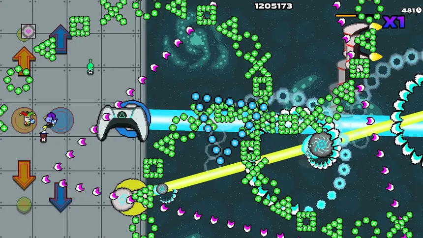 BSG: Big Space Guns is a coop bullet hell roguelike where you step on giant buttons to activate cannons while you dodge bullets.
