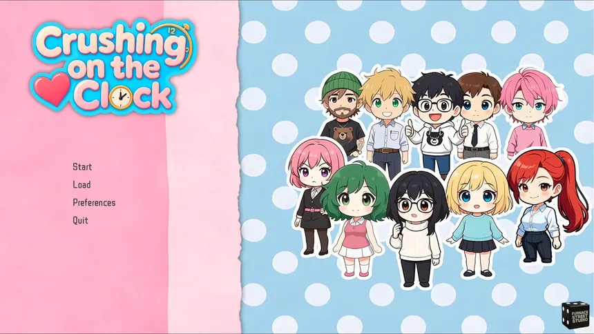 Crushing on the Clock — игра от компании FurnaceStreetStudio, разработанная для платформы PC. Проект совмещает в себе такие жанры и элементы, как визуальная новелла. Дополнительно игроки выделяют такие особенности игры, как симулятор, симулятор свиданий, визуальная новелла и выбери себе приключение. Игра рассчитана на одиночное прохождение, многопользовательские режимы не предусмотрены.