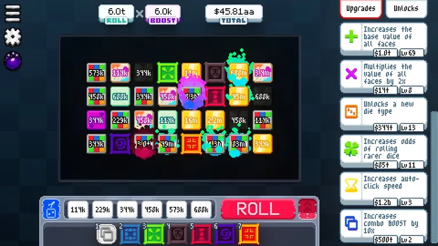 В Infinidice вам предстоит тщательно продумывать порядок активации костей, чтобы максимизировать свою прибыль. Разработайте свою неповторимую комбинацию и наблюдайте, как ваша система зарабатывает деньги, пока вы не достигнете вершин финансового могущества. А еще есть система прокачки, дерево апгрейдов и множество других фишек.