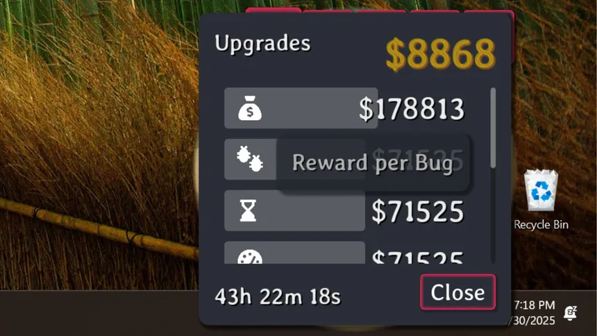 В Desktop Slippers геймплей строится вокруг простой, но захватывающей механики: наблюдайте за процессом, улучшайте характеристики своих тапочек и наслаждайтесь этой своеобразной медитацией. Увеличьте скорость, маневренность и другие параметры, чтобы сделать охоту на баги еще более эффективной и увлекательной.